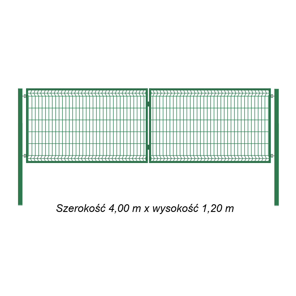 Brama Ogrodzeniowa Skrzydłowa Panelowa Ocynkowana +Kolor Zielony RAL6005 Wysokość H-1,20 m x Szerokość. 4,0 m Kompletna