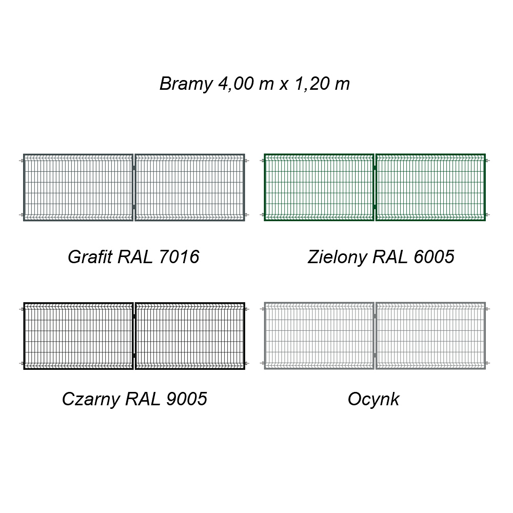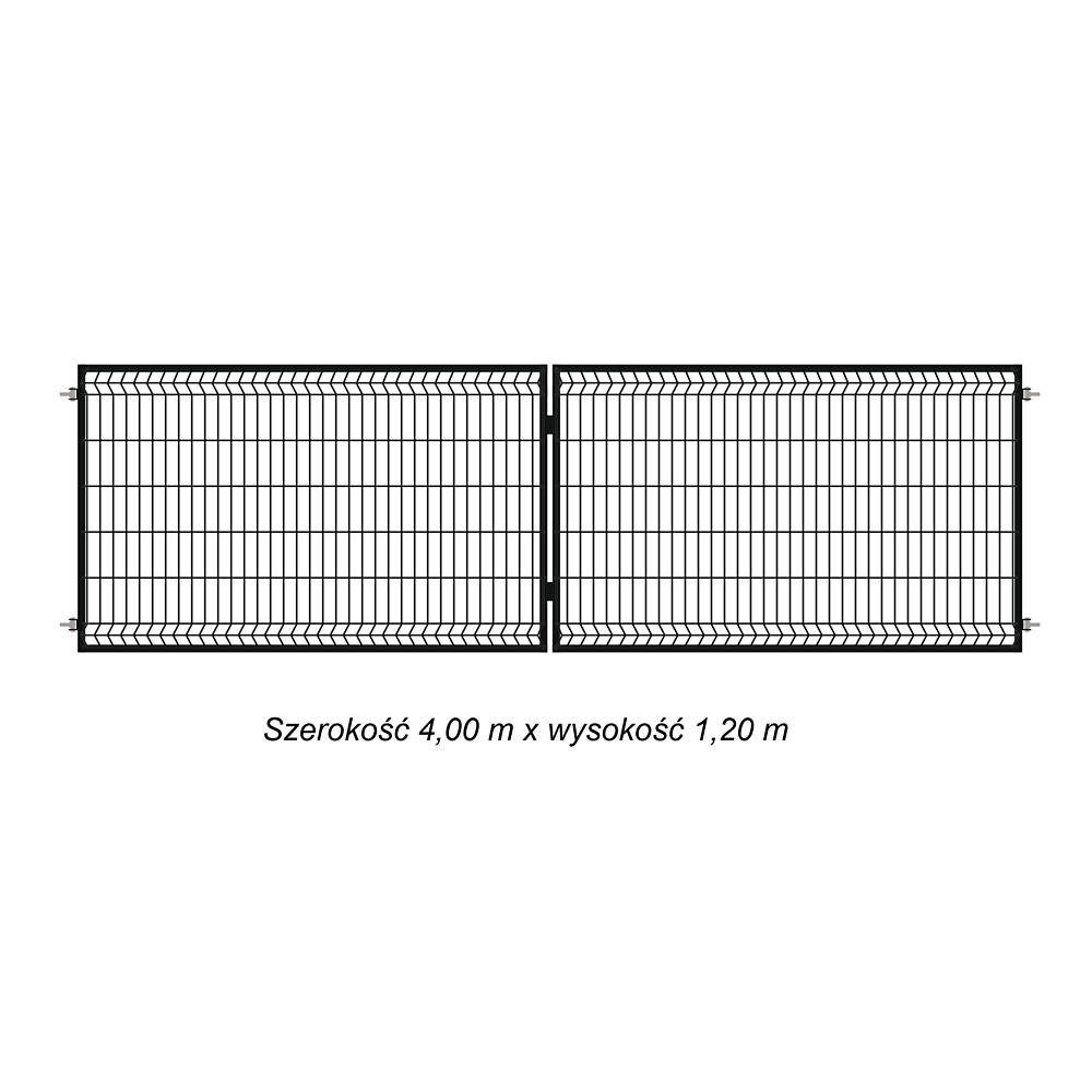 Brama Ogrodzeniowa Skrzydłowa Panelowa 3D Kolor Czarny RAL 9005 Wysokość 1,20 m x Szerokość 4,0 m