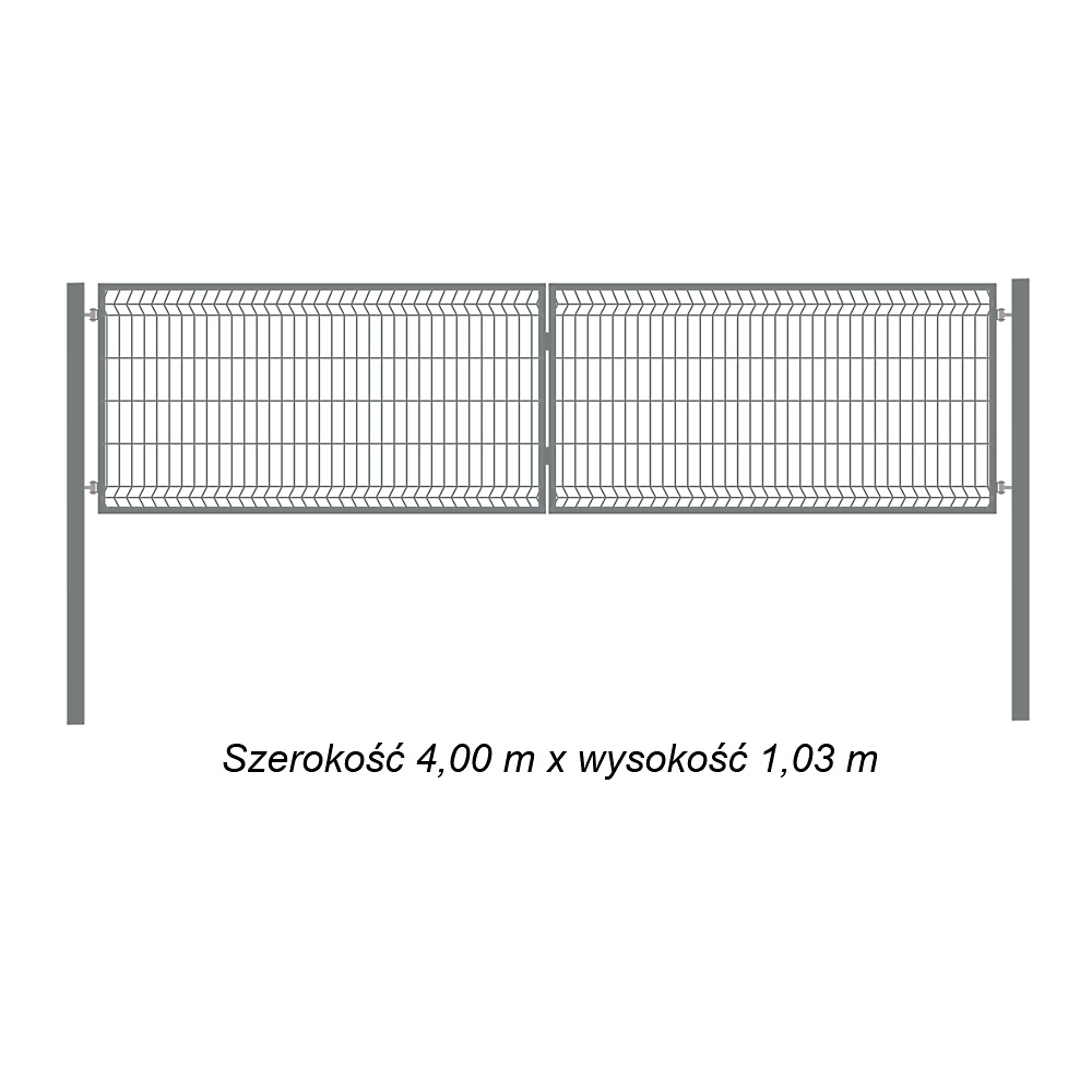 Brama Ogrodzeniowa Skrzydłowa Panelowa Ocynkowana 3D H-1,03 m x Szer. 4,0 m Kompletna