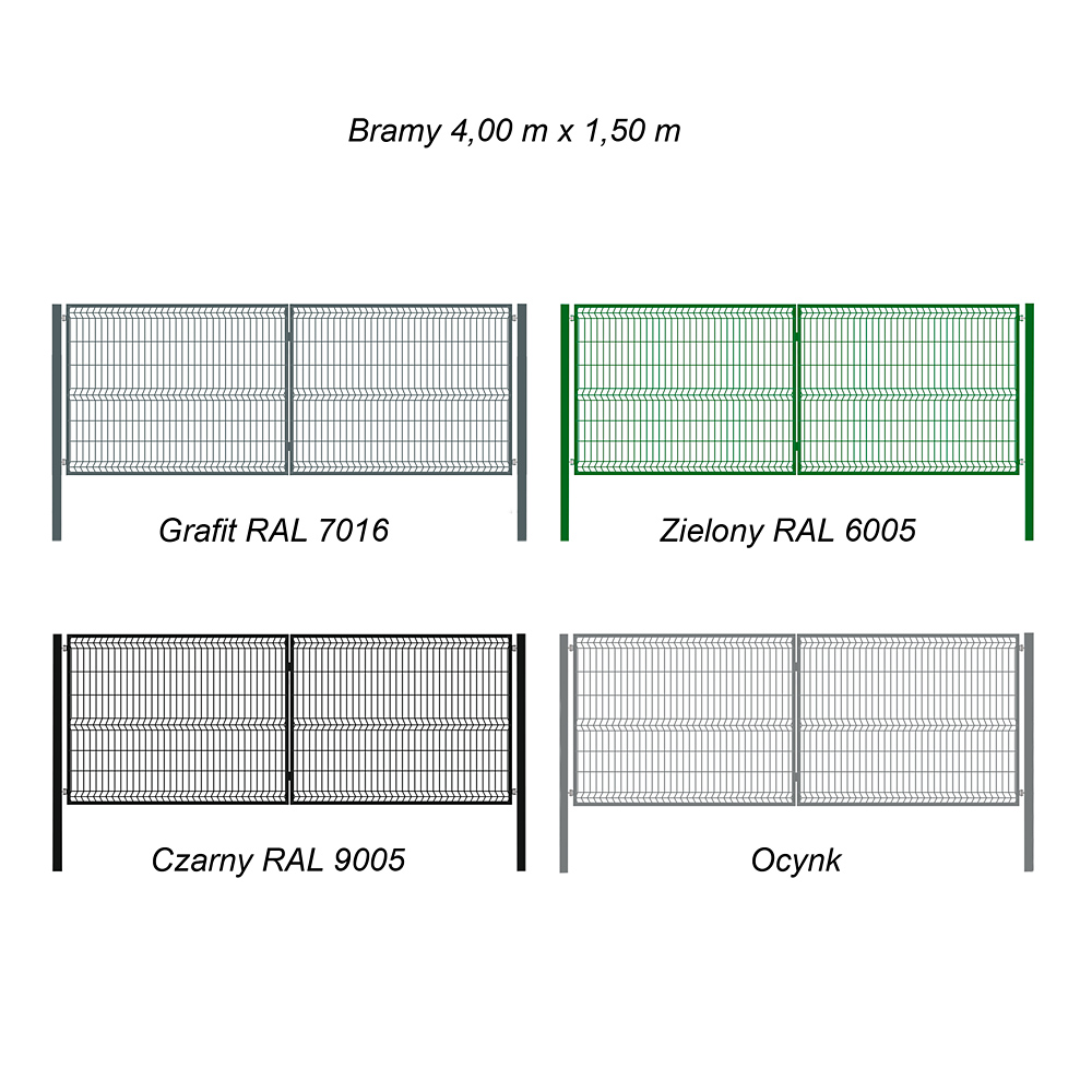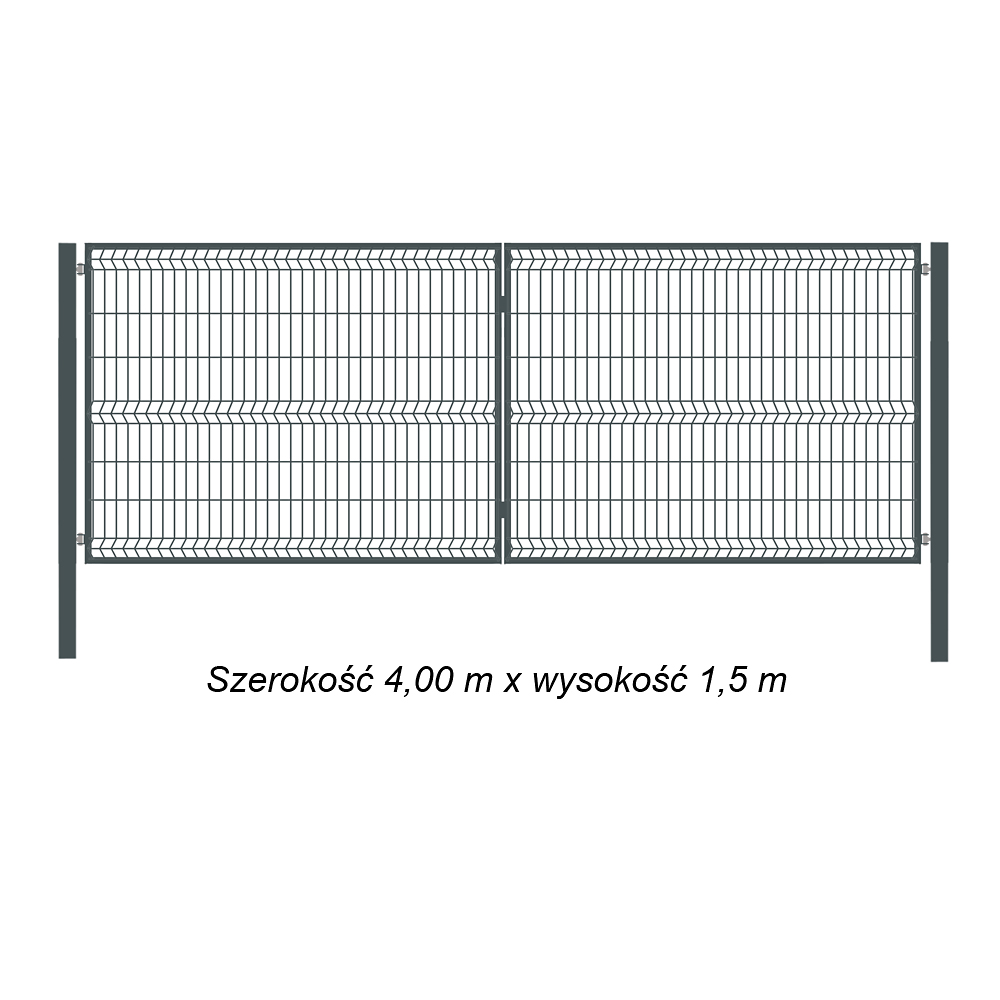 Brama Ogrodzeniowa Dwuskrzydłowa Panelowa 3D Kolor Grafit, Antracyt RAL 7016 Wysokość H-1,50 m x Szerokość. 4,0 m Kompletna