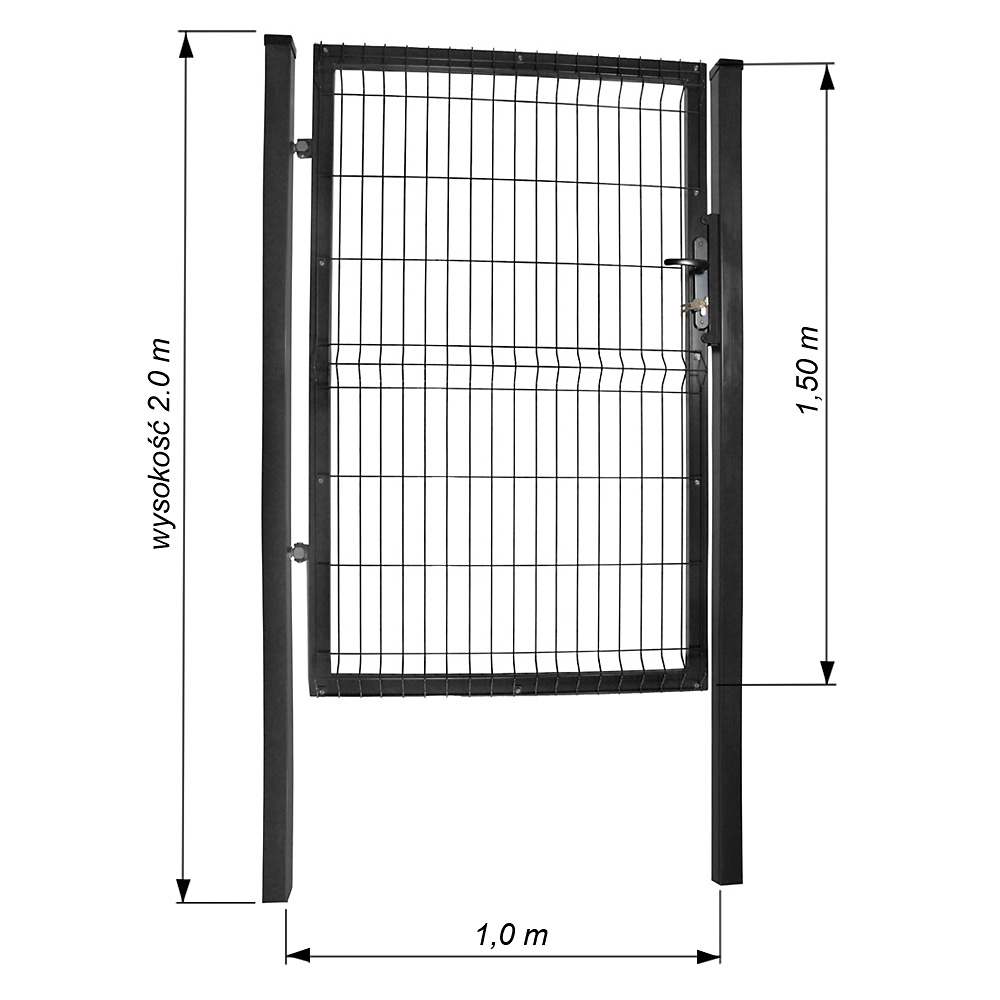 KOMPLET Furtka Ogrodzeniowa Panelowa 3D Czarna RAL 9005 Lewa