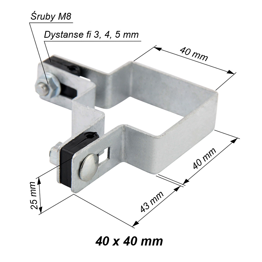 Obejma Panelowa Kwadratowa Narożna, Rogowa 40×40 mm Ocynkowana Komplet
