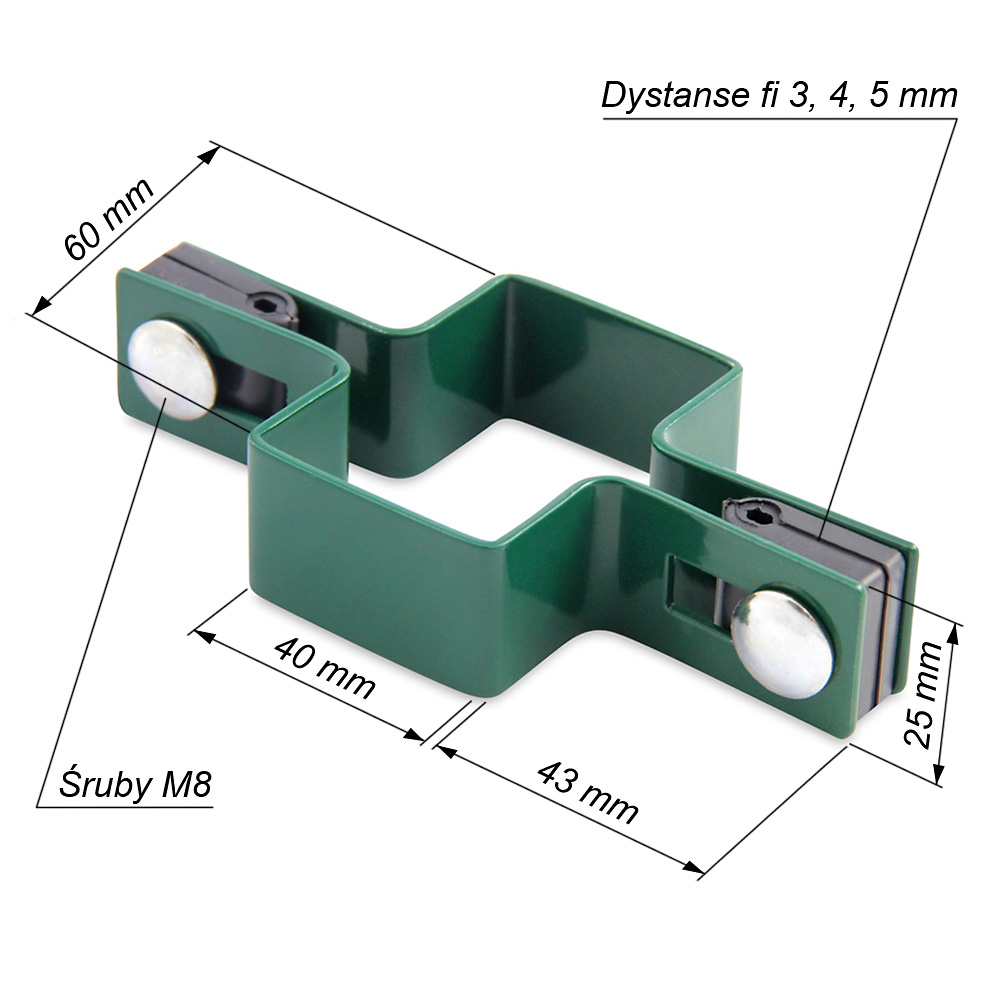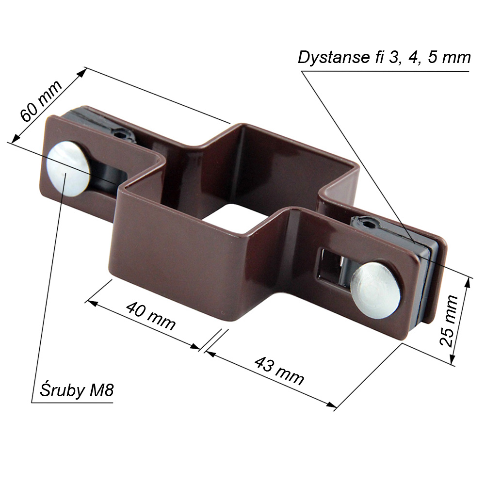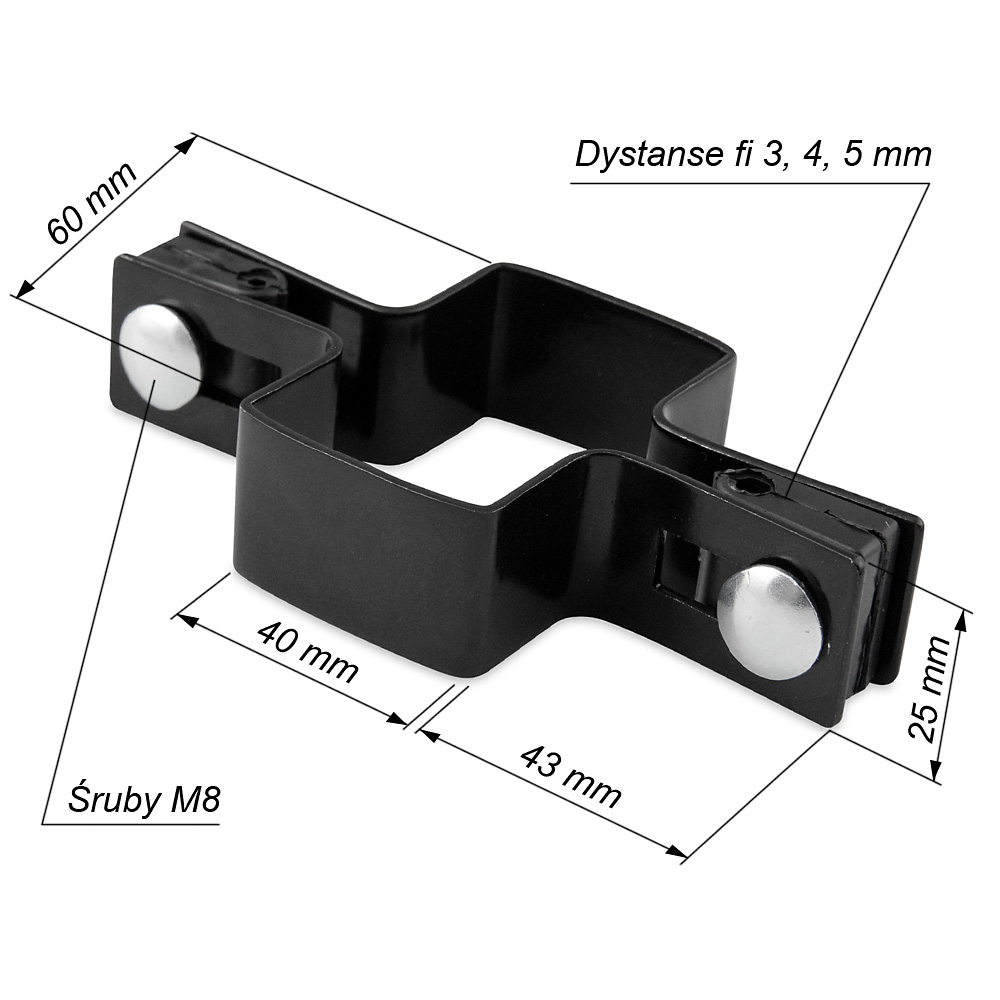 Obejma Panelowa Pośrednia 60×40 mm Kompletna Kolor