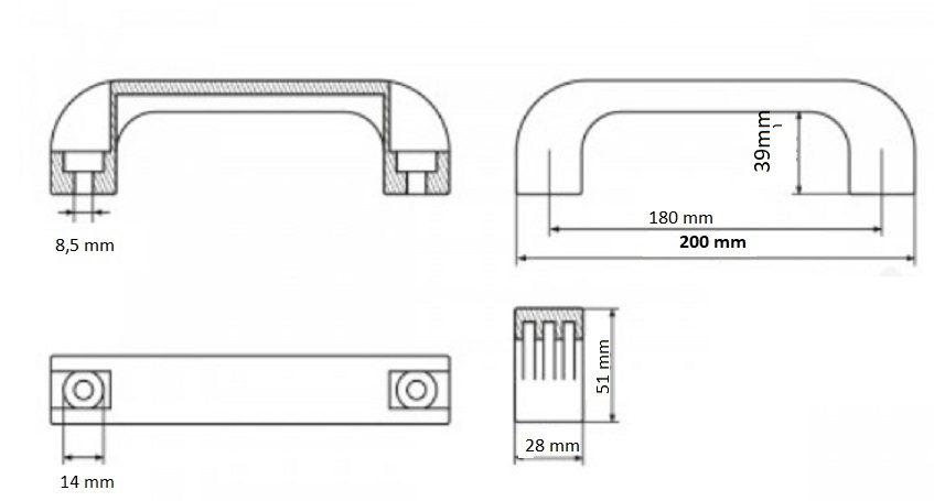 - Otwory montażowe przelotowe: fi 8,5 mm