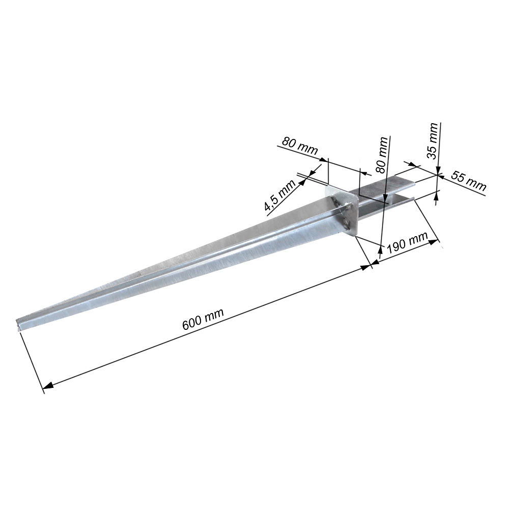 - Długość części wbijanej w grunt: 600 mm